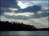 |  SEPT 23, 2001 ORIENTAL MONA LISA IN THE CLOUDS On Sunday, September 23, 2001, I was late for services at the Holy Trinity Wilderness Cathedral. Storm clouds and rain had made it dangerous to go by boat , the road to the Cathedral would have been too muddy to drive, and it was too late to arrive in time by foot. About the time the services were to start, that is, 15 minutes before sunset, the storm withdrew, the rain ceased, and I went to the pier and started the boat. As the sun set over the water and over the Cathedral I began to take photographs to record the beauty of what Ethicians call Gods paintbrush. (visit www.GODSPAINTBRUSH.org) My boat was the only one on the waters and no one had come by foot over the Creation Trail. Therefore, I decided to conduct services from the water where a better view of the ever-changing colors of the storm-clouded sunset would be visible. After the sun had set and the moon had risen the colors and reflections were still vibrant in both the clouds and upon the waters. I headed for home at full-speed and for some reason, instead of docking, I headed back out to mid-lake to catch the last afterglow of sunset. I looked toward the Wilderness Cathedral and in the clouds above appeared an incredibly beautiful female face with oriental eyes, a petite nose, and a Mona Lisa smile. Dumfounded, I stared for what must have been several minutes. Remembering that my digital camera was with me I attempted to take a photograph but it was too dark to render the image. I stared again for a minute or two and the face remained intact, high above the Cathedral, gazing upon me with a sublime beauty and emitting an spiritual glow and ephemeral essence. For only an instant I glanced at my watch to determine the time of this wonderful and mysterious moment. My watch indicated that the sun had set approximately 28 minutes before. When I looked up after only a couple of seconds the image which had been intact for several minutes before had disappeared and only the afterglow of the sunset remained. The cries of the terns as they settled down for the night and the haunting call of the screech owl were the sounds of the night that enveloped me before I started the engine of the boat and returned to the dock. The first time that I had seen a human face over the Cathedral the image had been that of God in the form of a bearded man or at least His Angel in that form. This time the image in the clouds, which emitted a spiritual essence was that of a beautiful madonna. But who was she and what was she trying to tell me? Perhaps I will never know, but my spiritual experiences at The Holy Trinity Wilderness Cathedral are messages from God who will reveal the mystery when He is ready for me to understand. ETHICIUS I To be included on our member list, please send us an e-mail and provide the following information: Your name, address, and e-mail address. Please feel free to share your thoughts and opinions. We would love to hear from you! Click here to e-mail us! This site is sponsored by BibleLands.com Related Sites Home |