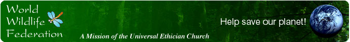 | The World Wildlife Federation Mission is dedicated to protecting and preserving all of Gods creatures both great and small. Many conservation organizations, although dedicated to protecting individual endangered species, are not aware that God insisted that Noah protect each and every species from harm, no matter how small or insignificant. The Universal Ethician Church is dedicated to honoring Gods command by using 100% of all donations to the World Wildlife Federation fund for protecting Gods Creation in Wilderness Cathedrals around Planet Eden. Your tax-deductible contribution will make God smile. Our mission is not affiliated with THE WORLD WILDLIFE FUND, also known as WWF. If you are looking for their web sites, please go to www.wwf.org, www.worldwildlife.org, or www.worldwildlifefund.org. We urge you to support the WWF in their efforts to protect Planet Eden. Send all contributions to: The World Wildlife Federation-1401 19th Street, Huntsville, Texas 77340 To be included on our member list, please send us an e-mail and provide the following information: Your name, address, and e-mail address. Please feel free to share your thoughts and opinions. We would love to hear from you! Questions? Click here to e-mail us! This site is sponsored by BibleLands.com |
